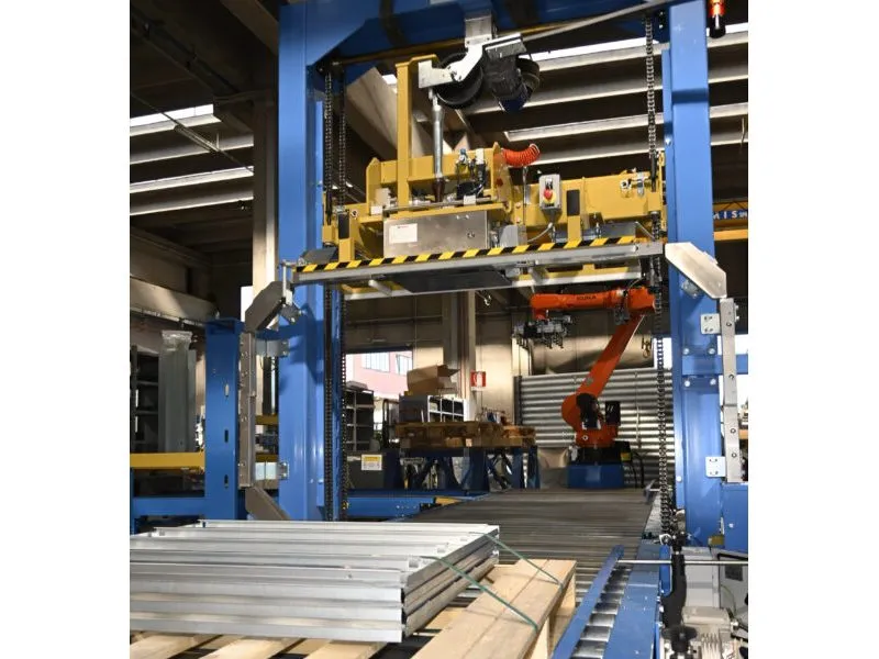 In die Produktionslinien für Einlegeböden von Stam können automatische Stapel- und Verpackungssysteme eingebaut werden.