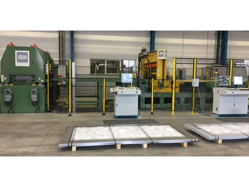 Linhas de corte transversal para processar espessuras finas, de até 4 mm, são linhas de corte com alça e avançadores de rolos ou linhas de corte no modo contínuo com guilhotinas voadoras ou rotativas